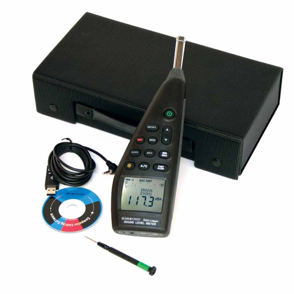 Elma 1352C kan brukes både frittstående og direkte tilkoblet PC, der man kan fjernstyre instrumentet og registrere opptil 99.999 målinger i sanntid. Den leveres komplett med veske, vindhette, batterier, USB-kabel og programvare, slik at du kommer raskt i gang.