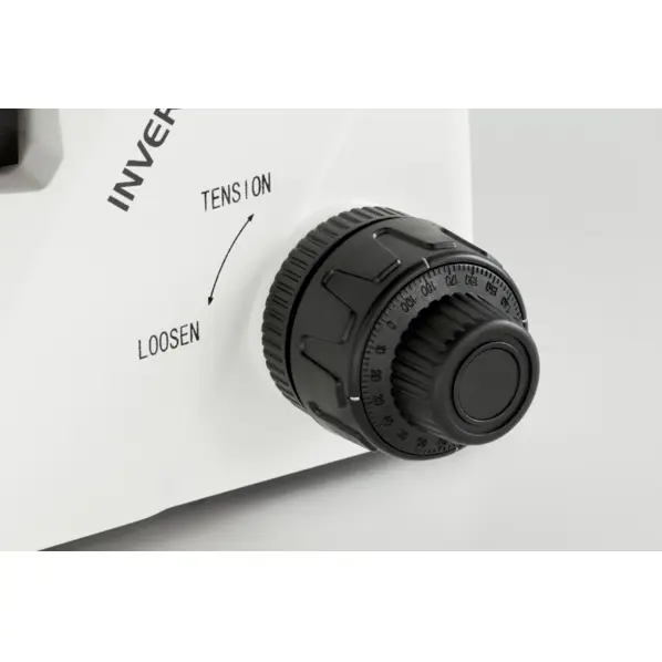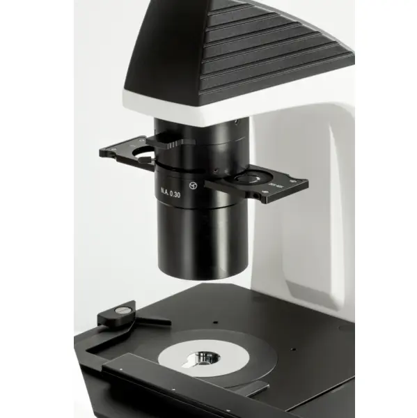 Det mekaniske stadiet med prøvehåndterer (∅ 110 mm) muliggjør rask og effektiv arbeidshåndtering. Ytterligere braketter for petriskåler er inkludert eller tilgjengelige som tilbehør. Mikroskopet har et uendelig optisk system, fem objektivposisjoner, og en rekke standardobjektiver (10×, 20×, 40×, PH 20×) av høy kvalitet.