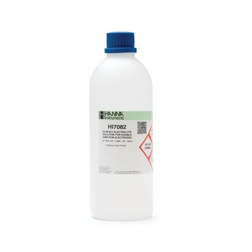 Hanna HI7082L er en høykvalitets 3,5 M kaliumklorid (KCl) elektrolytt- og oppbevaringsvæske utviklet spesielt for etterfylling og vedlikehold av pH- og ORP-elektroder med dobbel referanse (double junction). Riktig elektrolyttnivå er avgjørende for stabil måleytelse, rask responstid og lang levetid på elektroden.