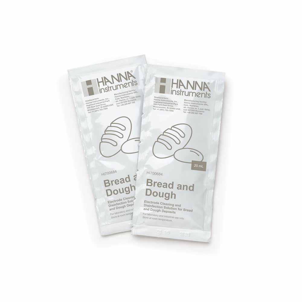 Hanna HI700684P er en spesialutviklet rensevæske for pH-elektroder som benyttes i målinger av brød- og deigprøver. Produktet leveres i praktiske engangsporsjoner på 25 x 20 ml.