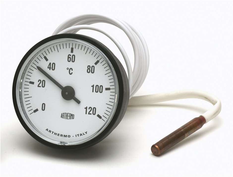 CP 03 analogt termometer med ekstern probe er et kapillær termometer som kan benyttes innenfor en rekke bransjer. Instrumenthuset har diameter på 52 mm (Ø) og selve målerhuset har maksimal omgivelsestemperatur på +65°C. Enheten har ellers følgende spesifikasjoner: