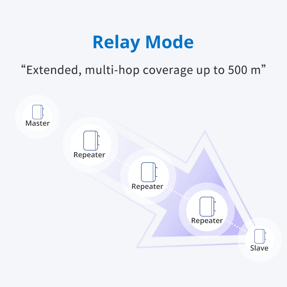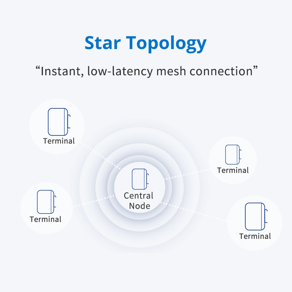 Systemet støtter både stjernetopologi og repeaterbaserte nettverk, og muliggjør punkt-til-punkt-kommunikasjon opptil 500 meter. Ved bruk av repeater-noder kan nettverket utvides til 3-5 km, noe som gir stor fleksibilitet og reduserte installasjonskostnader.