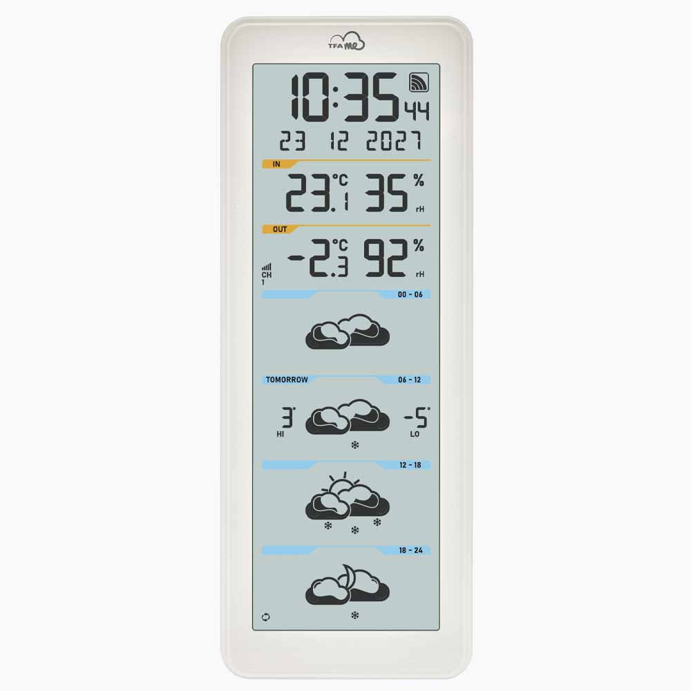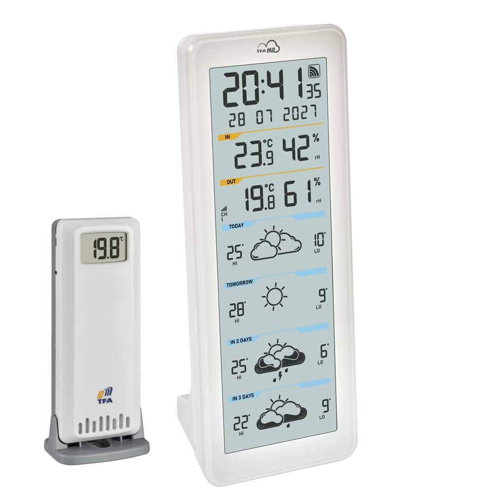 TFA 35.8108.02 trådløs WiFi-værstasjon (TFA.me ID-06) kombinerer moderne design med profesjonell værinformasjon og smart nettilkobling. Den karakteristiske tårnformen gir et raskt overblikk, mens stasjonen leverer et presist 4-dagers værvarsel direkte tilpasset din lokasjon.