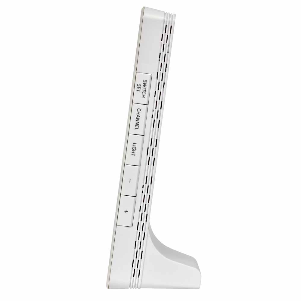Stasjonen drives primært via medfølgende strømforsyning, med batteribackup for ekstra driftssikkerhet. Den kan plasseres frittstående eller monteres på vegg, og viser alltid korrekt klokkeslett og dato – tilgjengelig på seks språk.